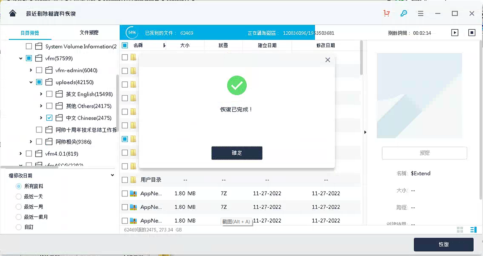 这个软件,帮我恢复了误删的500GB数据,当时我翻遍了近百个网站,测试了几十款不同的恢复软件,就这个最好用,简洁、无限制、可预览并且完全免费!本人都是用360...